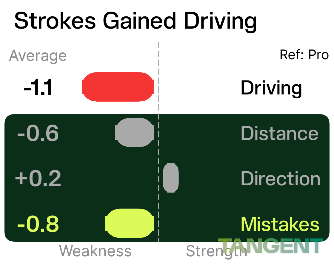 There are clear strengths to unpack — his short game performance was significantly better than his driving. He gained over 1.5 strokes around the greens according to Tangent, which was good enough for the 12th best performance in the field.